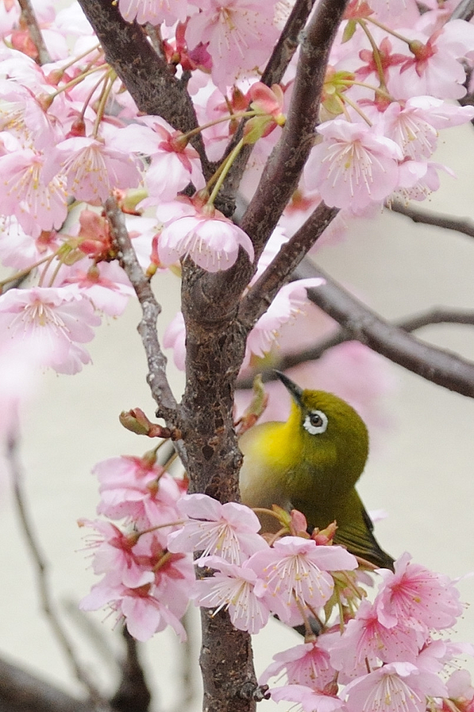 ちなみに、梅に鶯のウグイス色はどうもこのメジロの色らしいですね。