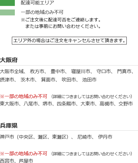 ※基本エリア以外(北海道・東北・南九州)のお届けは遠方料金が発生する場合や、配達不可の場合がございます。