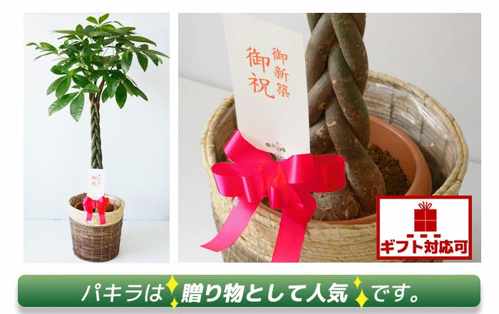 パキラの魅力 パッと手を広げたようなかわいい葉っぱが特徴的なパキラは、比較的乾燥に強く、丈夫で害虫もつきにくいため、初心者でも安心して育成できる植物です。インテリアとの相性がよく、樹形や大きさをコントロールしやすいのも観賞用として魅力です。 花言葉:快活・勝利 "快活"の由来は、頻繁に新芽を出す強い生命力からきていると言われています。"勝利"は、自分で育てたパキラを売ることによってお金持ちになったという言い伝えからきているそうです。