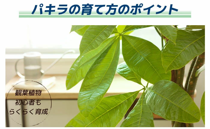 日当たりが良く、風通しの良い場所に置きましょう。購入したてのパキラは直射日光に当てると葉焼けする事もあるのでレースのカーテン等で日差しを少し遮ってください。水は土の表面が乾いたらたっぷりと与えます。受皿に溜まった水は必ず捨てましょう。