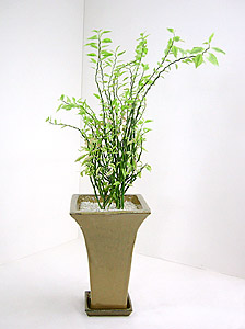 茎は下から上にジグザグしながら登って行く龍を連想させ、ジグザグのカーブの先端に交互に葉をつける不思議な形の観葉植物です。