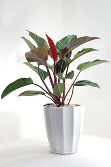 エキゾチックなカラーの大きな葉が、落ち着いた大人ムードを演出します。まだまだ最近出回り始めたばかりの新種のフィロデンドロンですが、すでにレアな愛好者もいるとか・・・