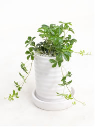 なんといっても5枚の可愛いくて小さな葉が魅力のシュガーバイン。ブドウ科のつる性植物なので、成長して高くなりすぎたという心配もご無用。おまけに、オランダで品種改良を重ね、乾燥にも強く、明るい室内でも十分OK!。インテリアグリーンとして今後も注目株間違いなしです!