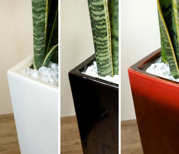 飽きのこないシンプルなスクエアポットは陶器製。 ホワイト・ワインレッド・ブラックの3色からお選びいただけます。 どのカラーも、光沢のある質感で高級感アリ。 お部屋のイメージにあわせてお好きなカラーを選んでくださいね。
