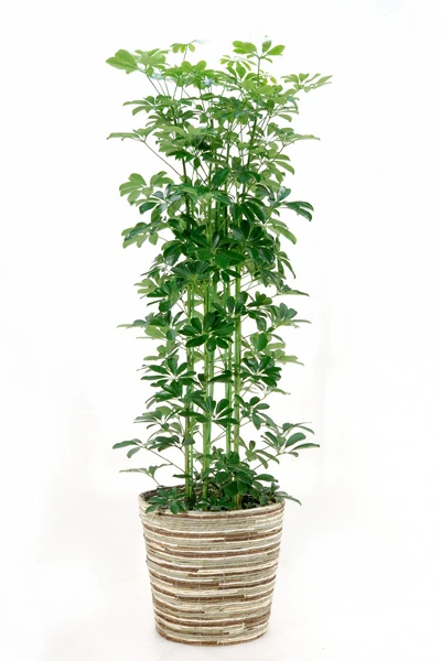 カポックと呼ばれる種類の中では、日本でももっとも古くから馴染みの深い園芸品のひとつです。 手を広げたようなカワイイま~るい葉と、ツヤツヤした深い緑色が魅力(^^b 大きくなると、赤や橙色の実をつけることもありますよ♪ 地域によっては、ゆっくり慣れさせると一年中屋外でも、育てられるので、軒下の玄関用などでも人気です!