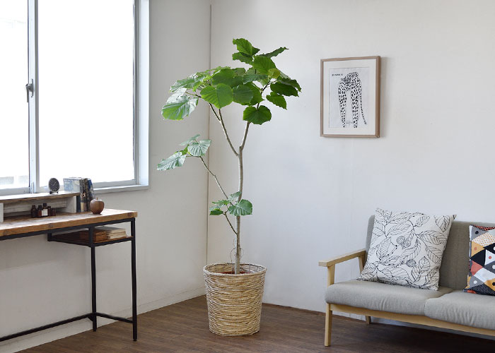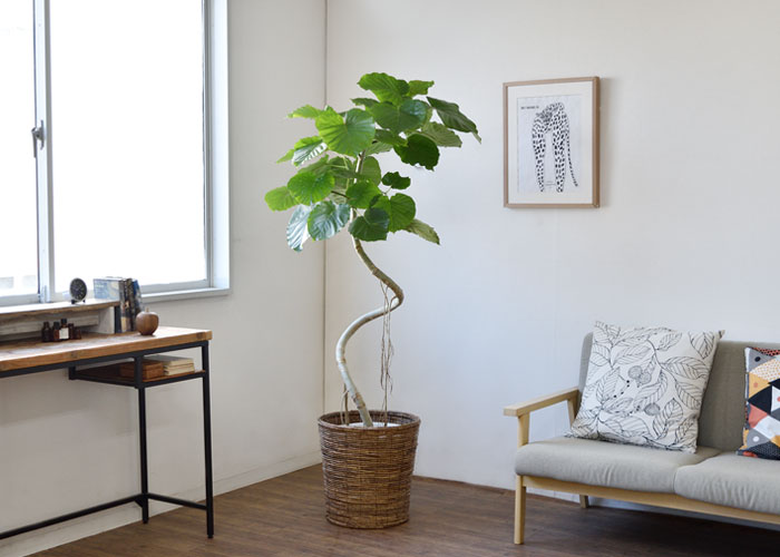 曲線を描く幹のウンベラータは、優しい空気でお部屋を満たします。