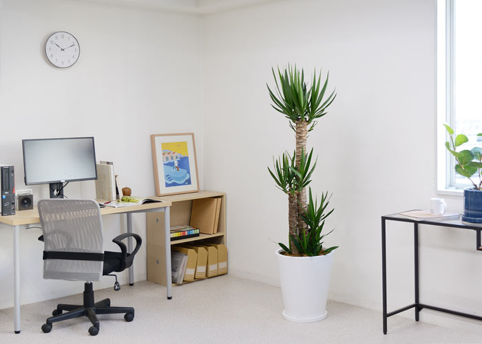 ワイルドで力強い雰囲気が魅力です。 剣のようなシャープな葉が、未来に向かって元気に力強く伸びていく若者にたとえ、「青年の木」とも呼ばれています。 乾燥や寒さにも強く、葉が広がらないので、スペースに困らず贈り物に喜ばれています。。