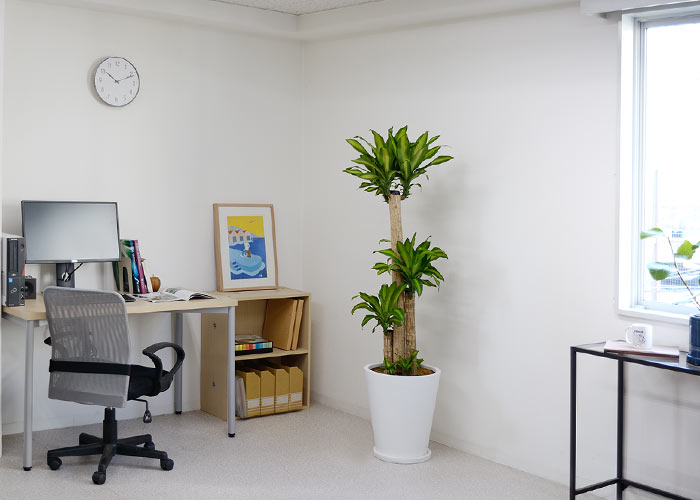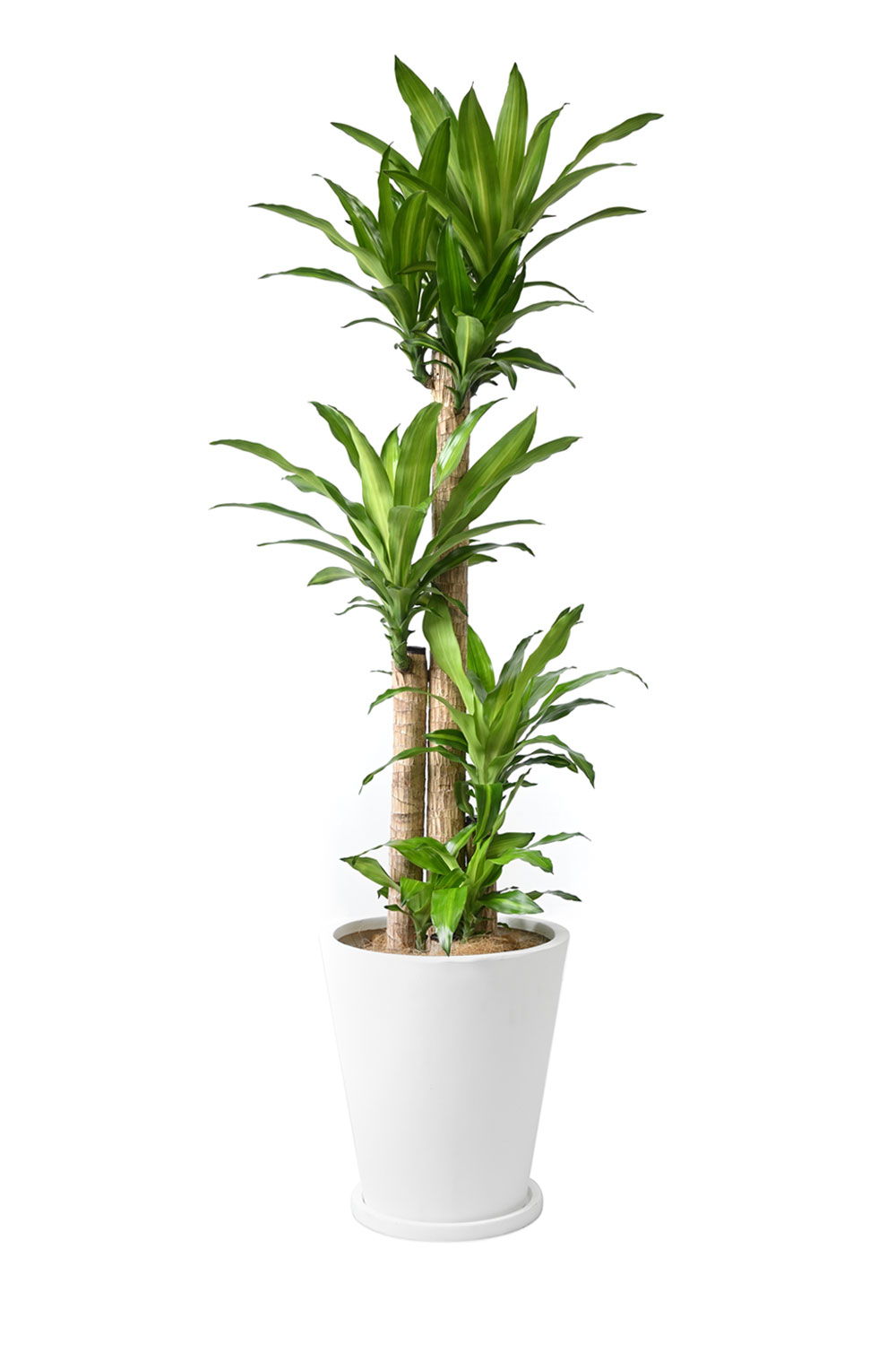 学名はドラセナ・フラグランス・マッサンゲアナ。 めったに咲かないお花が咲くとよい香りがするのでこんな名前がついた観葉植物ですが、 別名の「幸福の木」と呼ぶ方がピンとくるのではないでしょうか? この木を家に置くとよいことがあるというハワイの言い伝えがその由来で、 縁起が良く、幸せになりますようにと願いを込めて新築祝いや開店祝いなど 新しいことへの始まりの贈り物に喜ばれています。