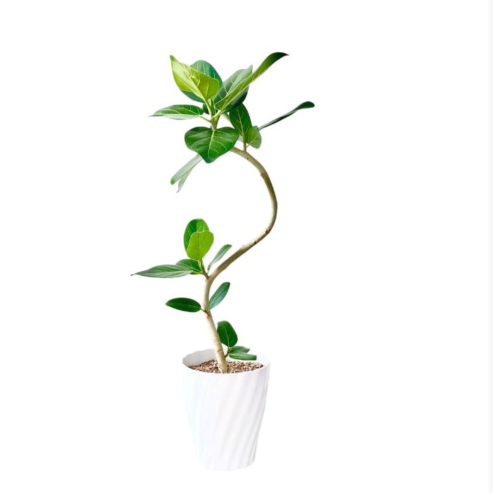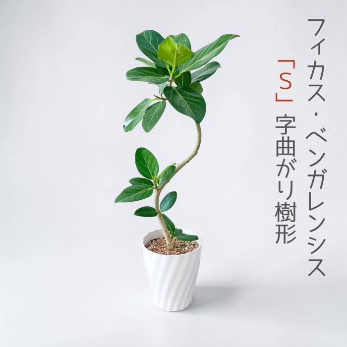 この商品の最大の特徴は、その芸術的な「S字幹」。真っ直ぐに育つ植物が多い中で、