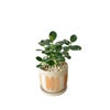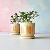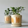 温かみのあるテラコッタカラーのオーバル模様が施された鉢を合わせました。ナチュラル、北欧、モダンなど、どんなインテリアにも馴染みます。