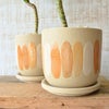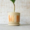 温かみのあるテラコッタカラーのオーバル模様が施された鉢を合わせました。ナチュラル、北欧、モダンなど、どんなインテリアにも馴染みます。