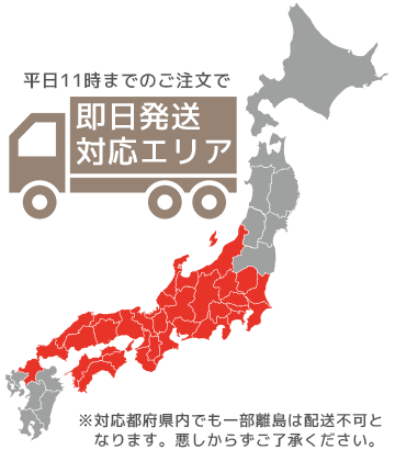 このマークのついた商品は平日午前11時までのご注文で対応エリアへ翌日配達可能です。