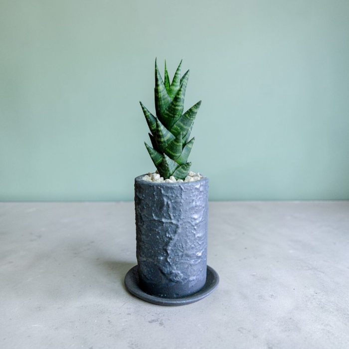 タイで育種された希少なハイブリッド種「サンスベリア」を、職人のこだわりが光る陶器鉢に仕立てました。