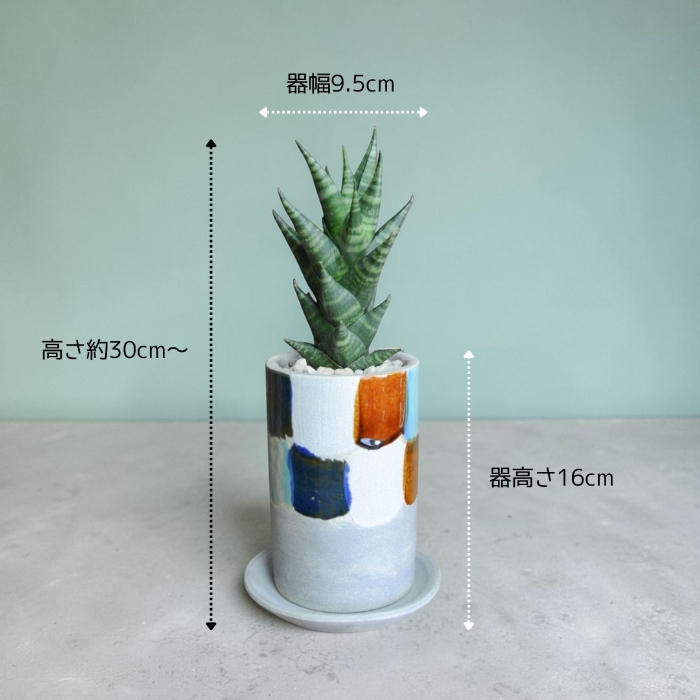 植物の「緑」と器の「色彩」が互いを引き立て合うため、リビングのサイドテーブルや、パッと目を引かせたい玄関のオブジェとして最適です。