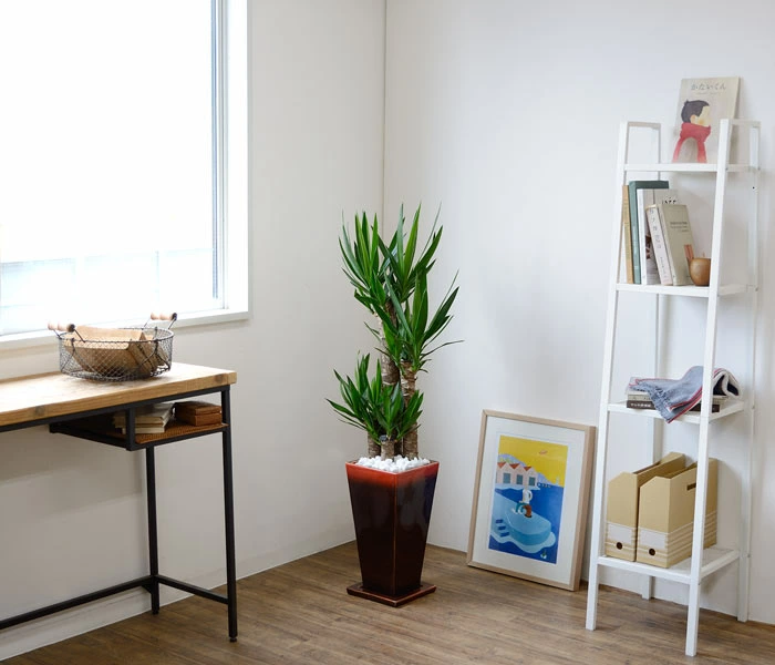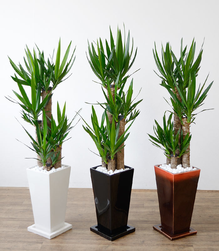 ワイルドで力強い雰囲気が魅力です。 剣のようなシャープな葉が、未来に向かって元気に力強く伸びていく若者にたとえ、「青年の木」とも呼ばれています。 乾燥や寒さにも強く、葉が広がらないので、スペースに困らず贈り物に喜ばれています。。