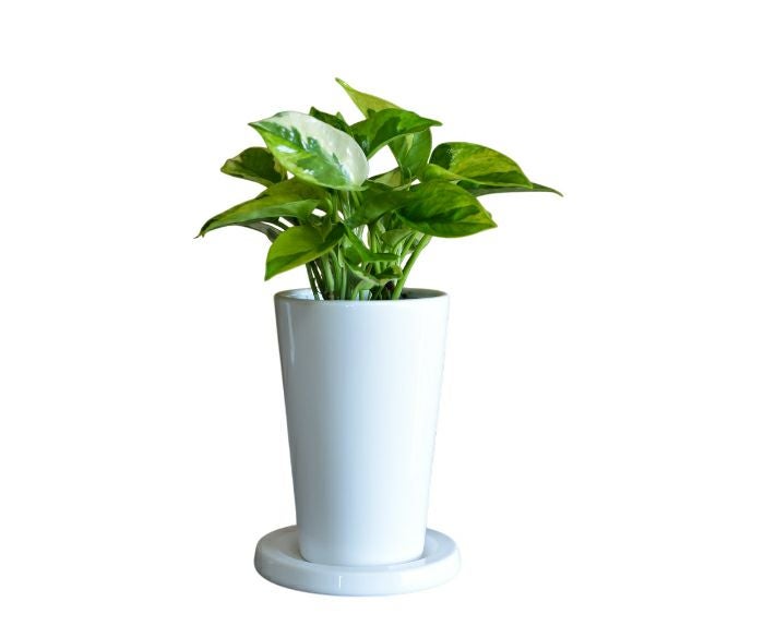 市場への流通がまだ少ない希少な品種で、お部屋に飾ればワンランク上のグリーンインテリアに。 丈夫で育てやすく、耐陰性も強いため、初めての方からポトス愛好家の方まで、安心してお迎えいただけます。 陶器製のポットは少しツヤのある光沢仕上げ。 小さなサイズでも安っぽさがないしっかりとしたポットです。 飽きのこないかわいいテーブルサイズは、ちょっとしたギフトにも使えますね。