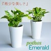 宝石のような輝きを放つ、特別なポトス 観葉植物の定番「ポトス」の中でも、一際目を引く新品種「エメラルド」 まるで宝石のエメラルドを思わせる、やや青みがかった深いグリーンと、優しく入るクリーム色の斑(ふ)が織りなす、 ため息が出るほどの美しいコントラストが魅力です。