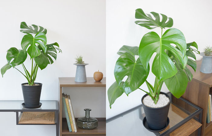 - ハート型の葉っぱに不規則にはいる深~い切れ込みが、インパクト大!なモンステラ 英語で読めば、名前のとおりモンスター。