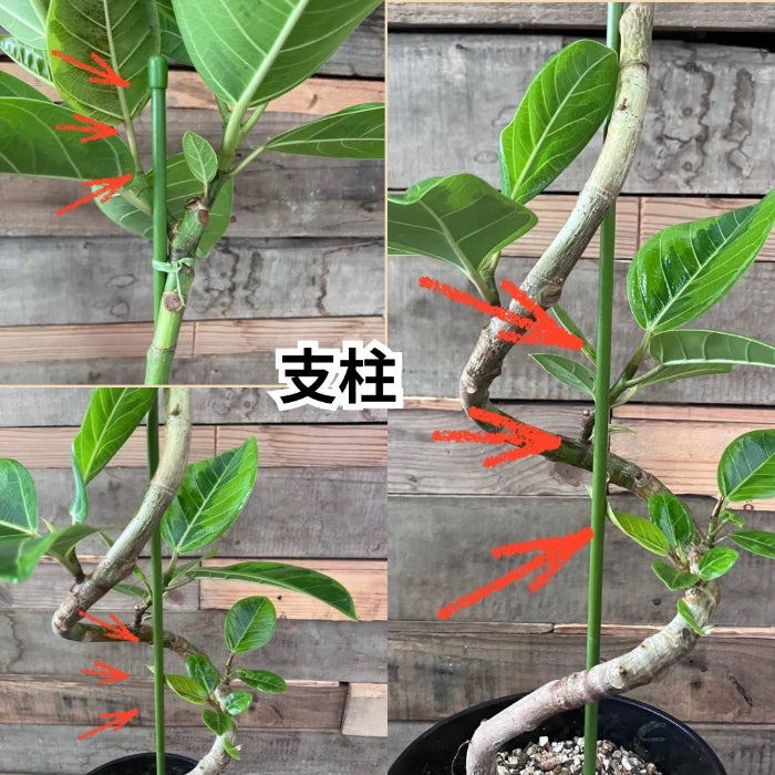 本来、原産地で30mを超える高木になるインドボダイジュを、室内用のインテリアとして使用しやすいようにコンパクトに仕立てたものです。